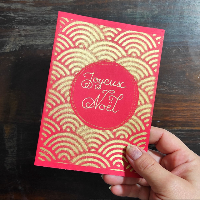 Carte de Vœux Calligraphie Personnalisée Médaillon | Rouge & Or | Fait Main